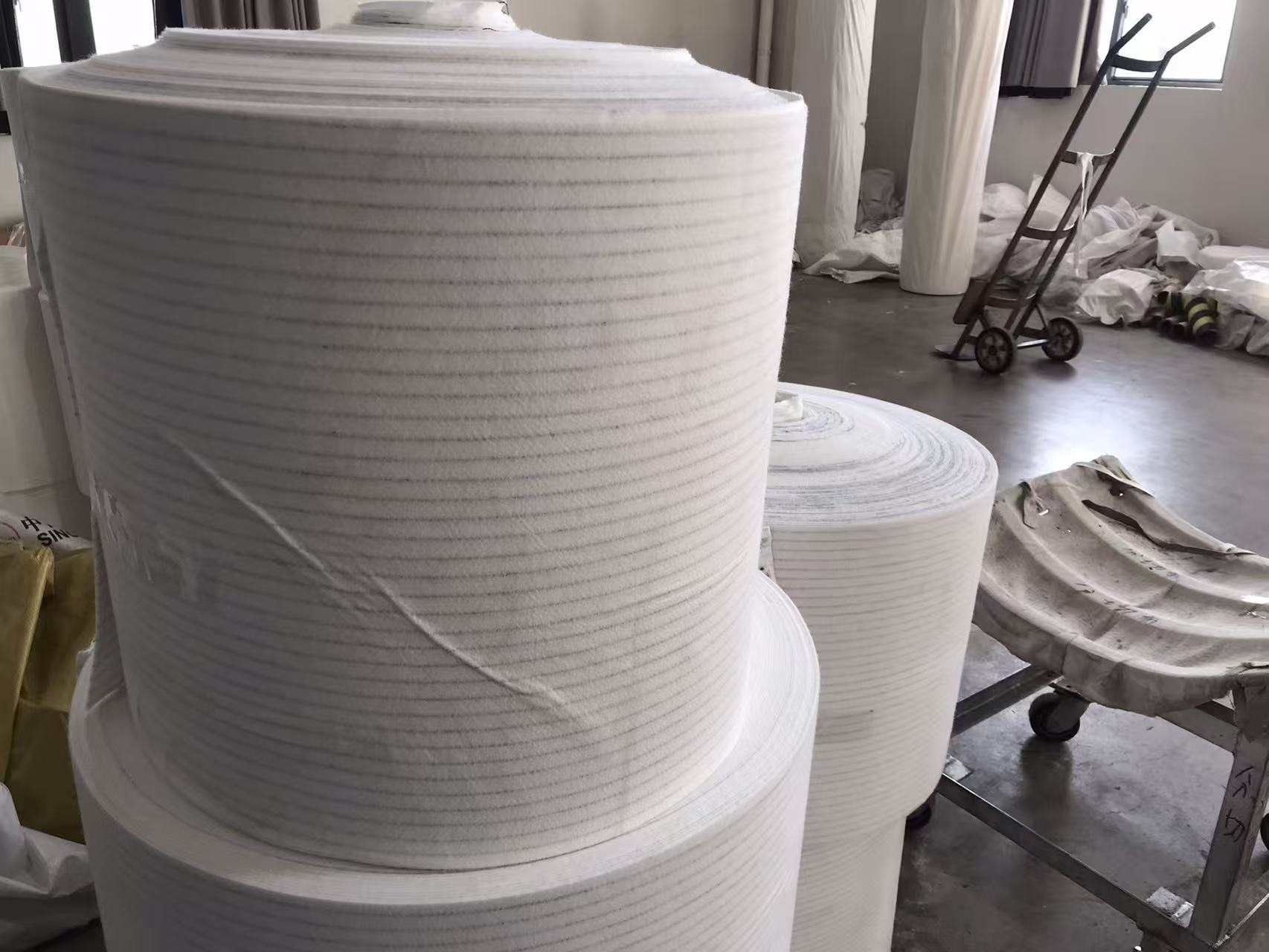 覆膜防靜電滌綸針刺氈濾袋專用水泥粉塵面粉塵煤粉鋁電力炭黑Polyester Needle Felt(滌綸/聚酯/PET覆膜) Fiber (基布) 100% polyester fiber material(材質(zhì)) 100% polyester Weight(克重) 500 g/m2 Air premeability(透氣量) 20-50 L/m2/s Warp Tensile Strength(斷裂強(qiáng)度/徑向) 1200N/5X20cm Weft Tensile Strength 斷裂強(qiáng)度/緯向 1100N/5x20cm After Treatment (后處理方式) Singeing, calendaring Continue Working Temperature (連續(xù)工作溫度) 130℃ Max. Working Temperature (連續(xù)工作溫度) 150℃ Chemical Properties(耐酸堿性 ) Anti-acid (耐酸性) Excellent (優(yōu)) Anti-alkali Excellent(耐堿性) Excellent (優(yōu)) Anti-oxidative(耐氧化性) Good(好)