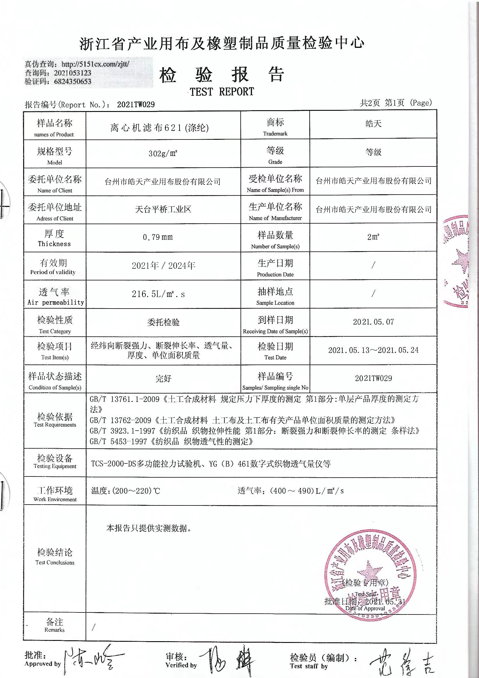 離心機(jī)濾布檢測(cè)報(bào)告