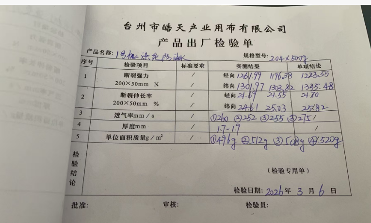 一號機滌綸防水防油 透氣率可以達到 260L/M2/S 255L/M2/S