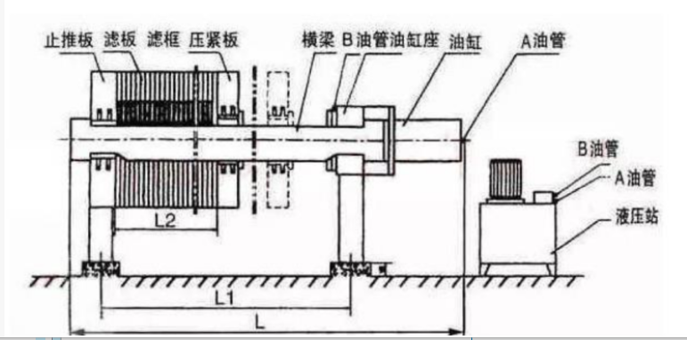 板框工作原理 該板框壓濾機(jī),由PLC程序控制器實(shí)現(xiàn)全程循環(huán)自動(dòng)操作(也可手動(dòng)操作),自動(dòng)完成逐塊拉板和卸餅(需人工鏟餅)工作, 完成卸料全過(guò)程。工藝過(guò)程:壓緊、保壓、翻板閉合、進(jìn)料、卸壓、初松滴液、翻板打開(kāi)、松開(kāi)、取板、拉板。